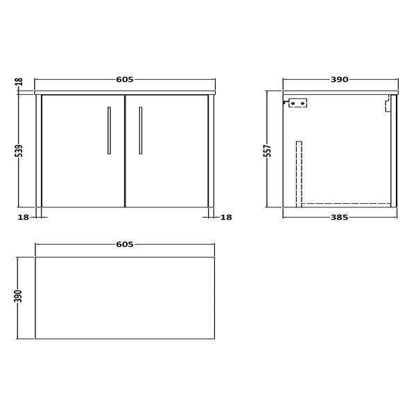 Hudson Reed Juno 600mm Wall Hung 2 Door Vanity & Worktop 605 x 557mm Autumn Oak