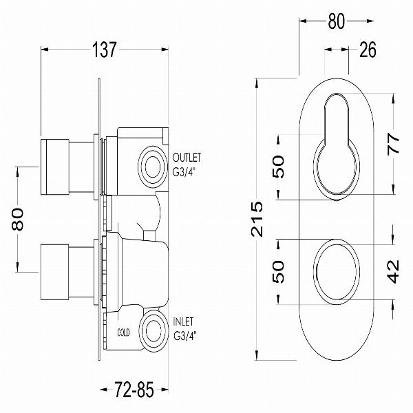 Minimalist sleek design with matt black finish. Can be fitted vertically or horizontally. Accurate flow control. Thermostatic control to +/- 2 degrees even if the water pressure fluctuates. Full thermal protection to prevent scalding in the event of hot or cold water shut off. In the event of hot or cold water failure the valve will shut down as per the relevant standard. The unique cartridge is highly resistant to calcium build up - even in hard water areas. Our valves are suitable for medium pressure water systems. The cartridge is fully reversible meaning if hot and cold supplies are the wrong way round it doesn't need re-plumbing. Simply remove the cartridge turn 180° and replace. Manufactured from high quality brass & ABS.