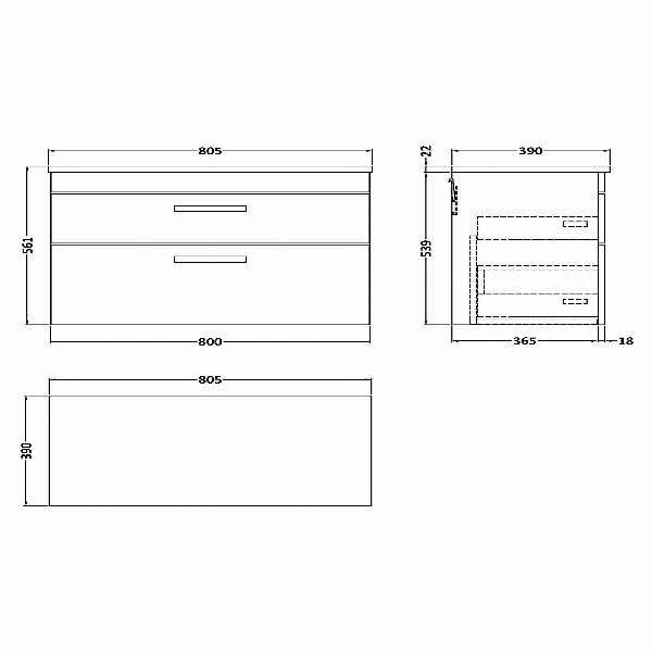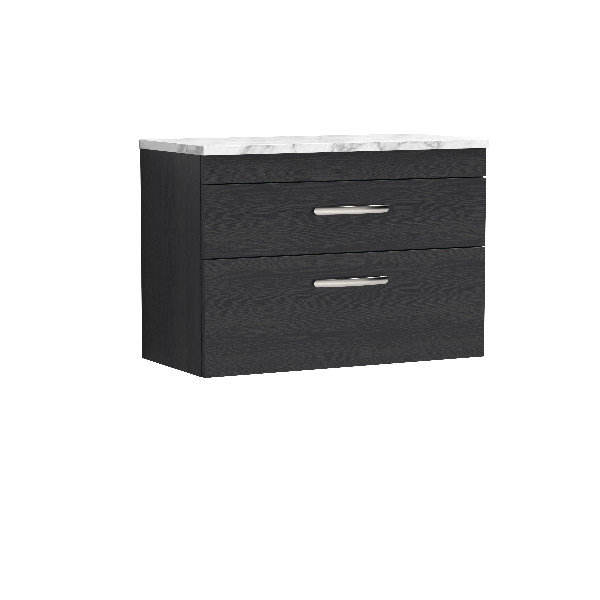 Nuie Athena 800 Wall Hung 2 - Drawer Unit and Laminate Worktop - Charcoal Black Contemporary