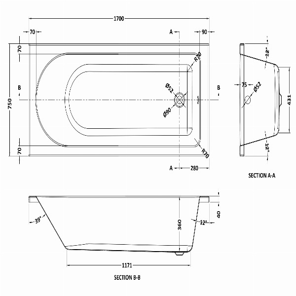 Round single ended bath with space saving size options .Designed and built to the highest quality. Acrylic.Un-drilled.Supplied with leg set.Suitable for use with bath screens.Choose from our range of bath panels to create the perfect look