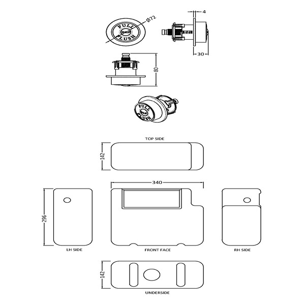 Hudson Reed Universal Access Cistern & Black Traditional Flush Plate 340 x 296mm Matt Black (XTY8T02)