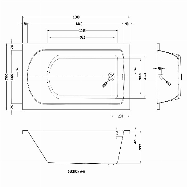 Nuie Barmby Standard Single Ended Bath 1600Mm x 700Mm - White Contemporary